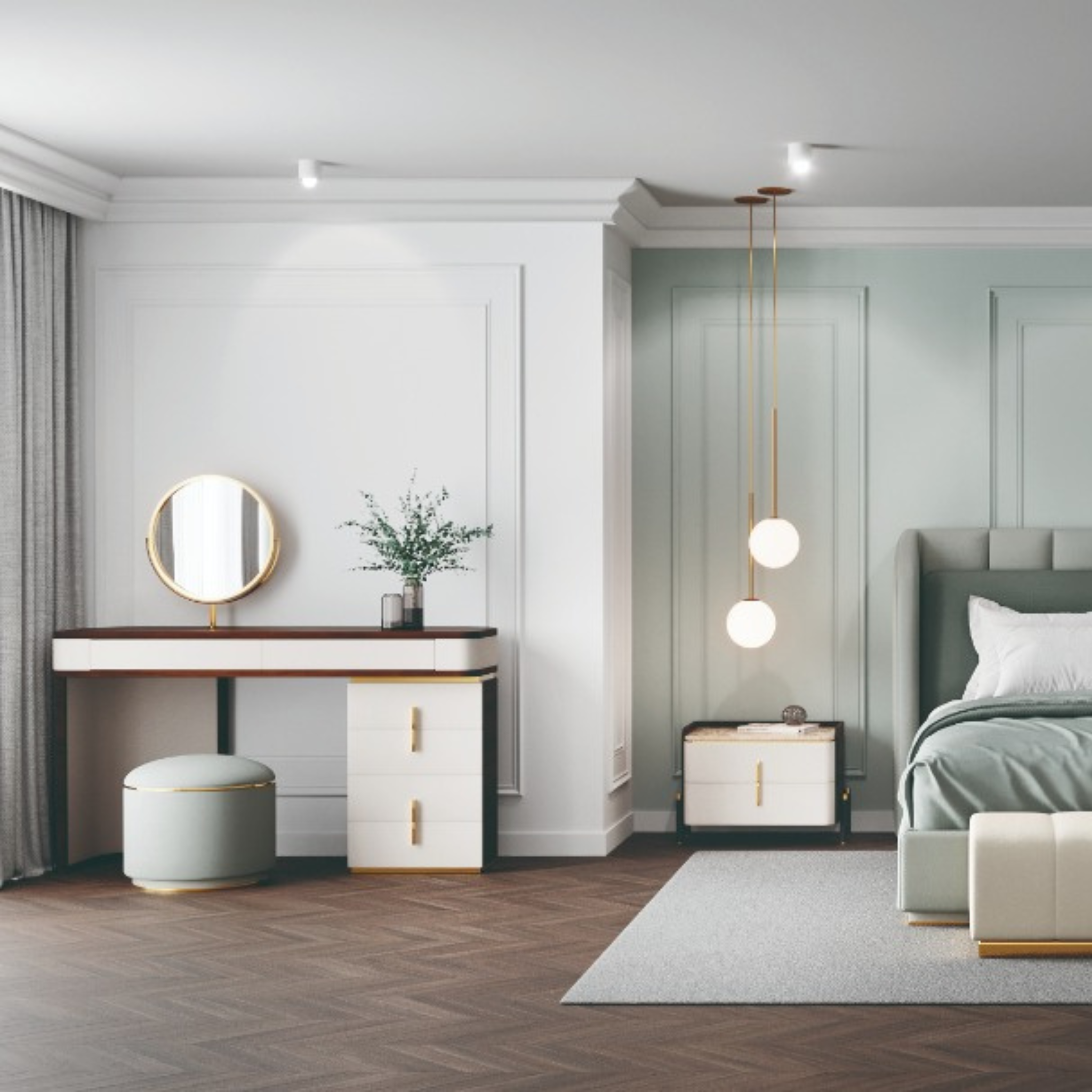 Customisation Options: Priced for wood or lacquered and metal finishes. Explore our range of materials to tailor the Nina Dressing Table to your décor. For a custom quote, please reach out to us.