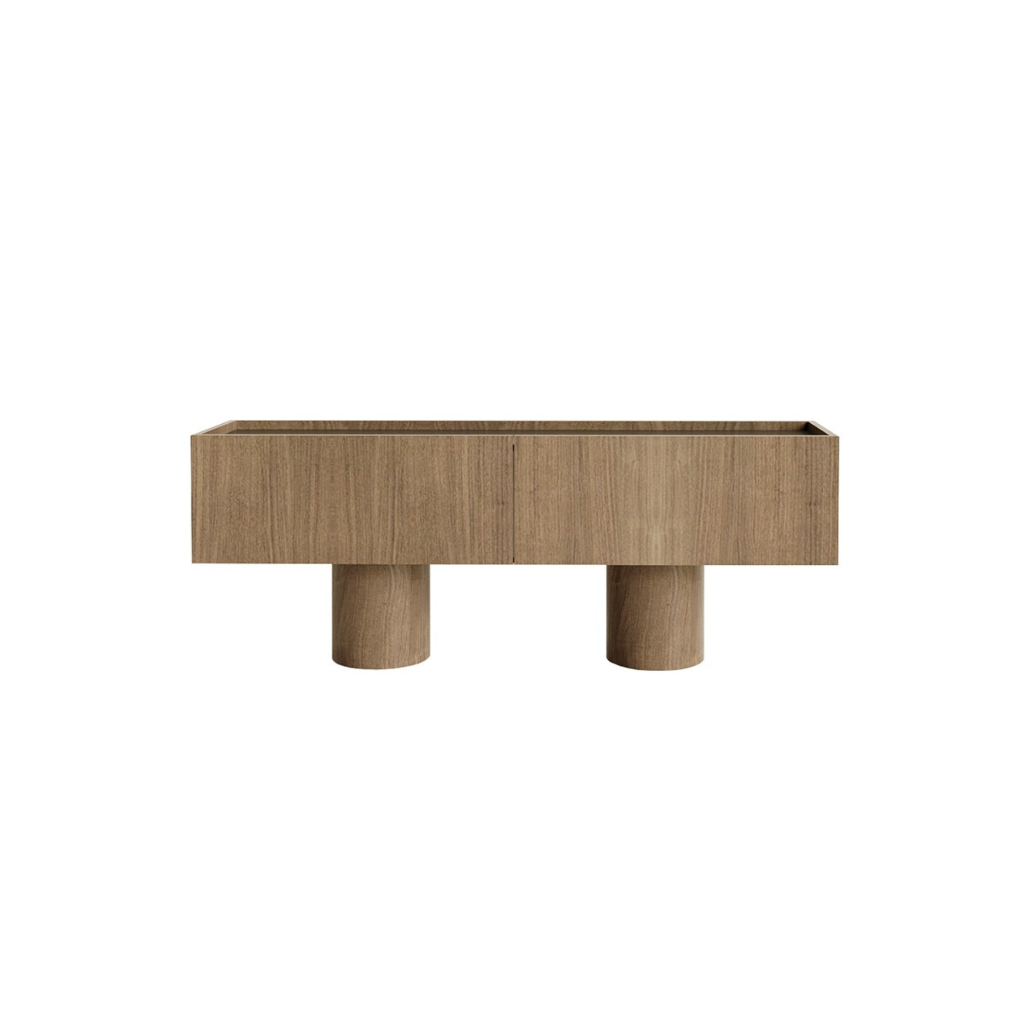 The Split Sideboard showcases a striking, minimalist design with a unique and visually intriguing silhouette. Featuring two front seamless drop-down doors, it combines sleek aesthetics with functional elegance, making it a standout piece for modern interiors.